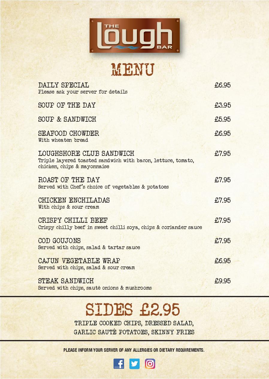 On Friday and Saturday night Lough Bar comes to life, with live music every weekend, from a selection of well chosen, & mainly local artists. Entrance is free, and many choose to enjoy a meal in Jospers Restaurant, before adjourning to the Lough Bar for a superb way to rounding off their evening.